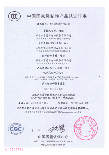 GCK國家強制性認證證書