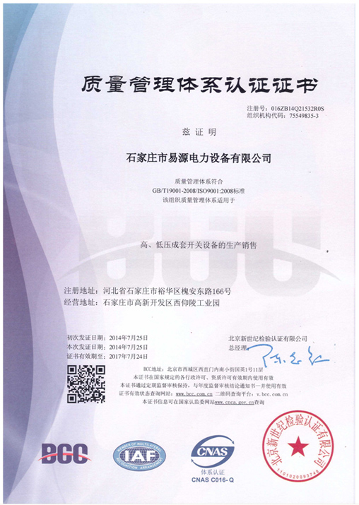質(zhì)量管理體系認證證書